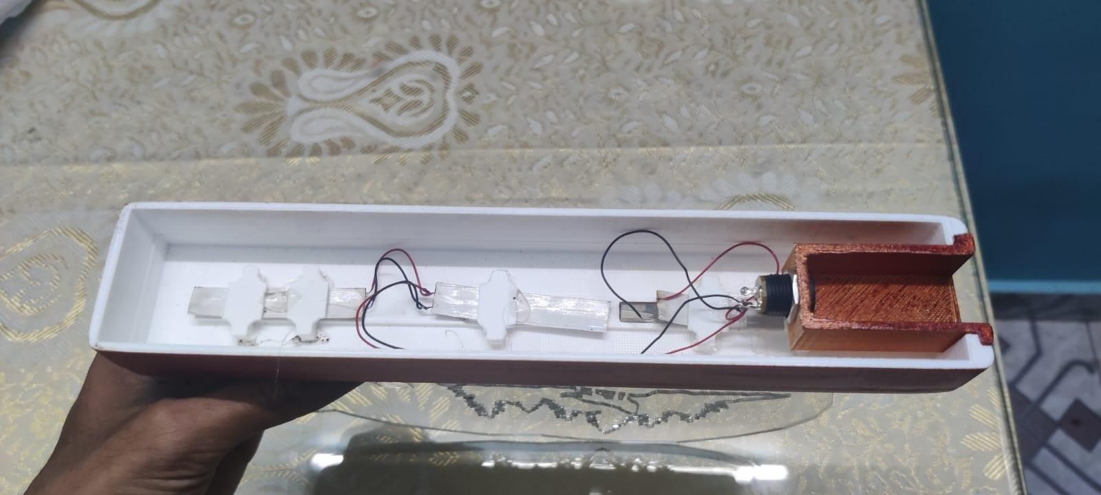 The circuit for this light is fairly simple. The circuit diagram can be viewed by clicking here. The led strips are cut into three pieces and glued using a glue gun as shown in the picture.